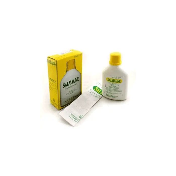 Salmagne contiene como principio activo citrato magnésico 0,55 g, sulfato magnésico 0,2 g, manitol 0,25 g, bicarbonato sódico 2,0 g, ácido tartárico 1,85 g. El resto de excipientes son: carboximetilcelulosa sódica, sacarina sódica, esencia de limón.