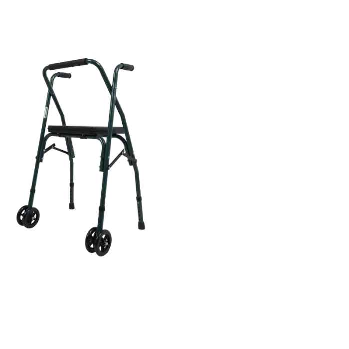 Andador plegable con asiento y ruedas delanteras