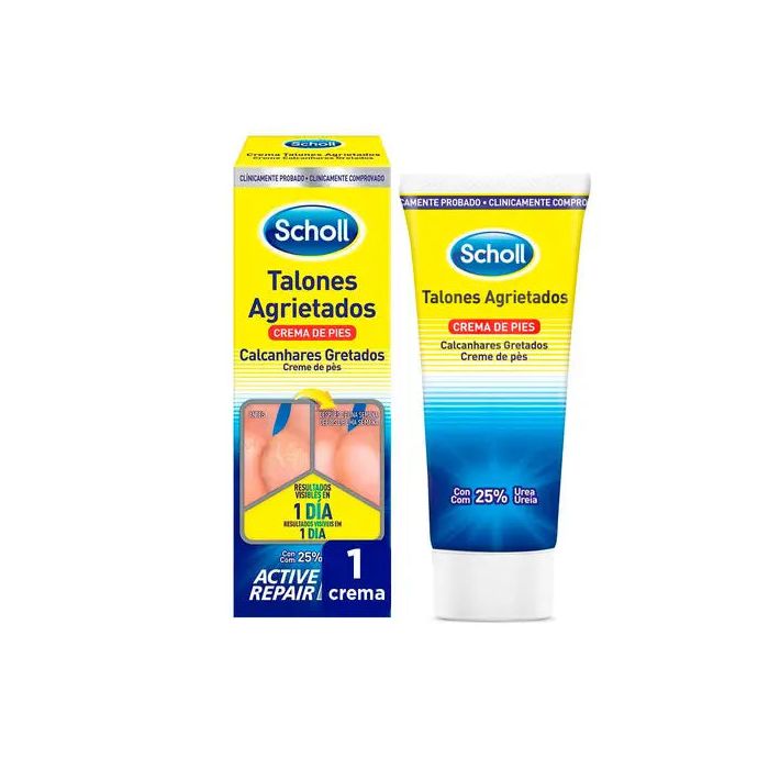 La Crema Para Talones Agrietados de Scholl, está diseñada con la última tecnología Scholl Active Repair K +, que fusiona un 25% de Urea y Keratina para un talón más suave y libre de grietas, en tan solo un día de tratamiento.