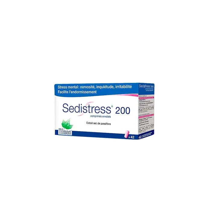 Cada comprimido de Sedistress contiene 200 mg de extracto de passiflora como principio activo principal. El resto de excipientes presentes en el núcleo son: maltodextrina, celulosa microcristalina, povidona, aceite de algodón hidrogenado, carboximetilalmidón sódico (tipo A), sílice coloidal anhidra, fosfato tricálcico. Los componentes de recubrimiento son: alcohol polivinílico, dióxido de titanio (E171), macrogol, talco, óxido férrico rojo (E172).
