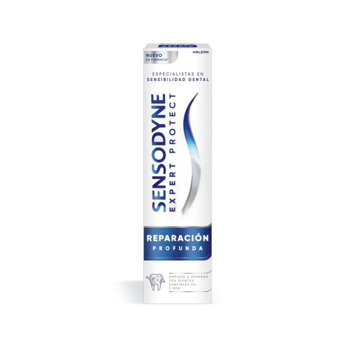 La pasta de dientes Sensodyne Expert Protect Reparación Profunda empieza a reparar los dientes sensibles en 2 minutos para un alivio clínicamente probado en 14 días. Regenera la capa protectora perdida en las áreas sensibles de los dientes y protege frente al retorno de la sensibilidad dental con dos cepillados diarios.
