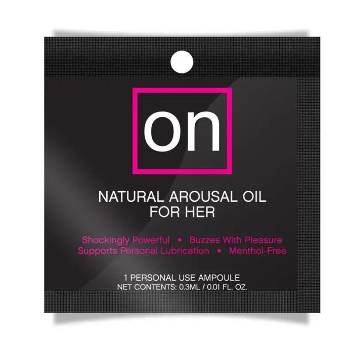 El uso de ON Arousal Oil ayudará al cuerpo de la mujer a responder más fácilmente a la estimulación física aumentando la capacidad de alcanzar el orgasmo más fácilmente. Otro beneficio de ON Arousal Oil es que en realidad puede ayudar a algunas mujeres a aumentar su producción de lubricación personal. Esto puede ser extremadamente útil para las mujeres que atraviesan cambios hormonales, histerectomía o toman medicamentos que tienden a disminuir la capacidad de su cuerpo para auto lubricarse. Aplica 1-2 gotas en el dedo y masajea directamente sobre el clítoris. Después de 5 minutos agrega más si lo deseas. En segundos, la mayoría de las mujeres sienten una sensación cálida y placentera de zumbido o vibración (en diferentes momentos del mes, las mujeres sienten diferentes cantidades de sensación debido a su fluctuación hormonal). El efecto puede durar hasta 45 minutos. LIGHT es un 50% menos intenso que nuestra fórmula original y ULTRA es un 25% más intenso que nuestra fórmula original. Apto para: Mujeres de cualquier edad y etapa de su vida que quieran sentir más sensaciones durante el sexo Mujeres que quieren tener orgasmos más rápidos o más potentes Mujeres que quieren usarlo a diario para sentirse excitadas durante todo el día Es perfecto para mujeres con problemas de sequedad o en etapa de menopausia Muchas mujeres dicen que les ayuda a lubricar más