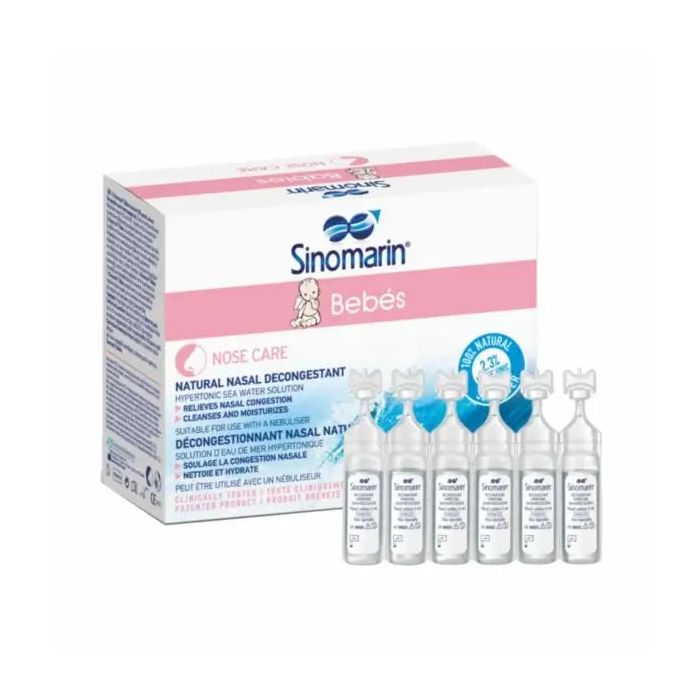 Sinomarin Bebé Agua de Mar, es un tratamiento descongestionante de las fosas nasales, enriquecido en agua de mar hipertónica, y una alta concentración de sales de cloruro sódico, minerales, y oligoelementos presentes en el mar de manera natural, que favorecen la descongestión nasal, eliminando el exceso de fluido, y ayudando a su desinflamación.
