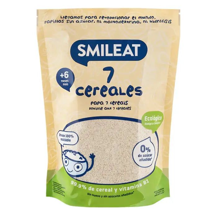 Smileat Papillas de 7 Cereales Ecológica 200g es un alimento para bebés