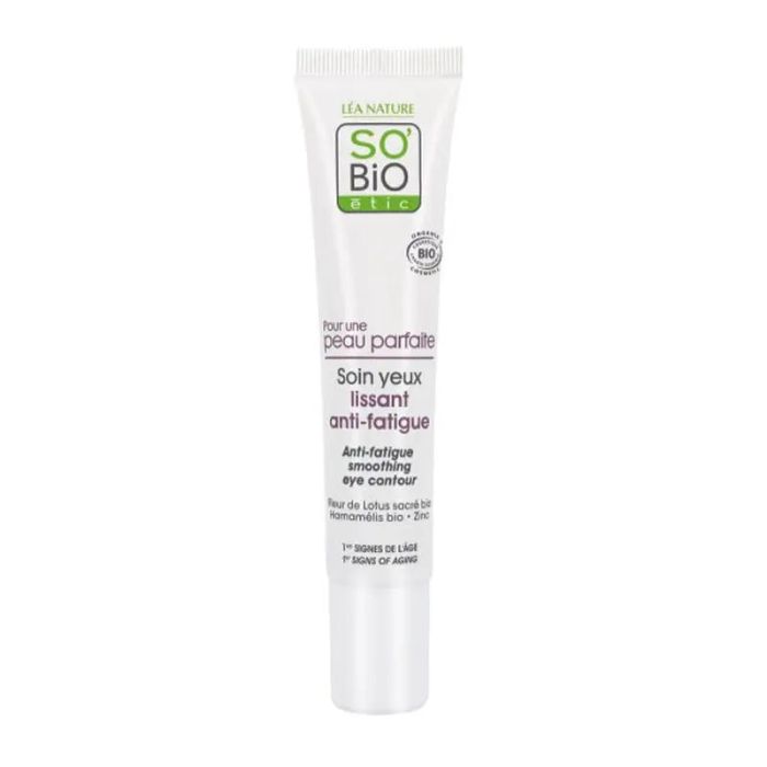 El Contorno de Ojos Piel Perfecta Anti Fatiga de So'Bio Etic combate los signos de cansancio alrededor de los ojos. Su fórmula suave reduce la hinchazón y las ojeras, dejando un aspecto más fresco y despierto. Ideal para una mirada rejuvenecida.