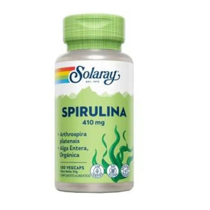 La Spirulina de Solaray es un suplemento dietético en forma de cápsulas que contiene 410mg de Spirulina por cápsula. La Spirulina es un alga verde azulada que se utiliza como fuente de nutrientes y antioxidantes. Se ha demostrado que la Spirulina puede ayudar a mejorar la salud cardiovascular, fortalecer el sistema inmunológico y aumentar los niveles de energía. También se utiliza como suplemento para la pérdida de peso y para mejorar la salud de la piel y el cabello.