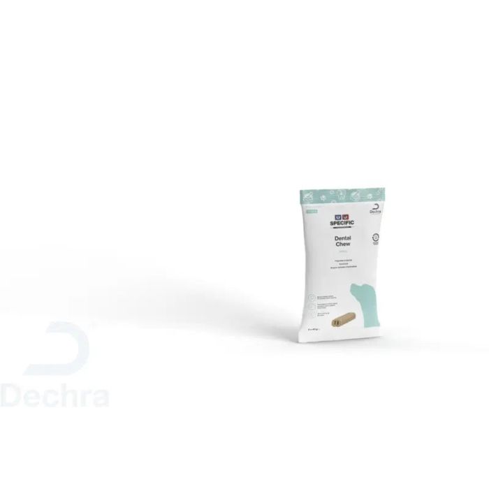 Los bocados masticables SPECIFIC, tienen una textura flexible especial y abierta, que permite que los dientes penetren profundamente en el premio al masticar, limpiando los dientes con el roce y garantizando una limpieza excelente. Formulados con ingredientes especiales para ayudar a reducir la placa y el sarro y fomentar un aliento fresco:¿Por qué elegir Dental Chew?El hexametafosfato ayuda a prevenir el sarro, ligando el calcio de la saliva y evitando la calcificación de la placaEl fosfato de vitamina C limita el crecimiento de las bacterias bucales, la placa y el sarroAlgas marinas: reducen la placa, el sarro y los componentes volátiles del azufre que causan el mal alientoEl extracto de té verde y el aceite de eucalipto favorecen una respiración fresca