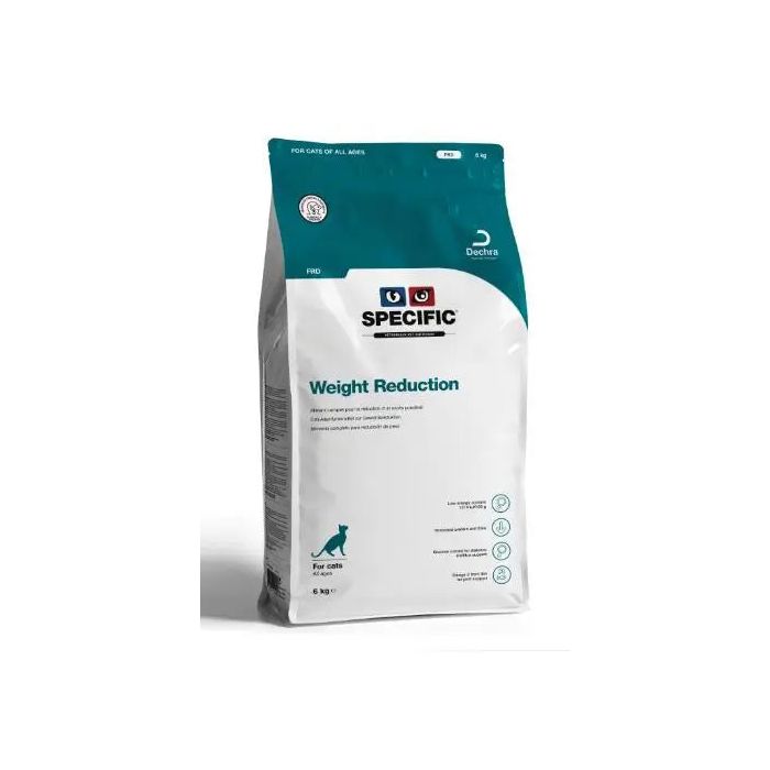 SPECIFIC™ Weight Reduction es un alimento seco de calidad diseñado para ayudar a su gato a perder peso. Una dieta baja en grasas y calorías, pero alta en fibra y proteínas. Esto significa que puede alimentar a su gato con una gran cantidad de comida sabrosa para satisfacer su apetito y, al mismo tiempo, ayudarle a perder peso.