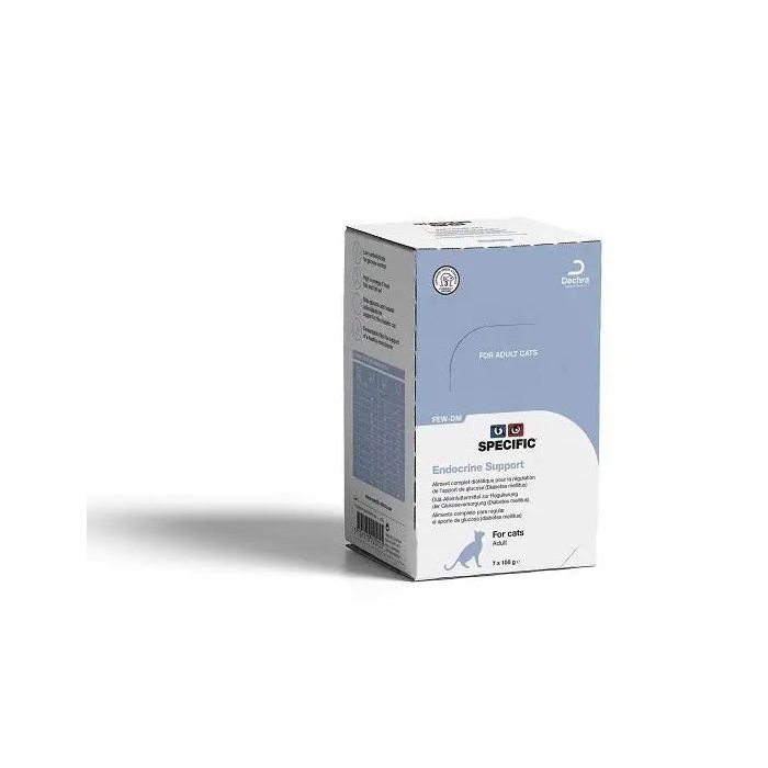 SPECIFIC™ endocrine support es una dieta húmeda para gatos con diabetes mellitus, con niveles muy bajos de carbohidratos para ayudar a controlar los niveles de glucosa en sangre.¿Por qué elegir Endocrine Support?Niveles muy bajo de carbohidratos y elevados de fibra ayudan a controlar los niveles de glucosa en sangre.Altos niveles de omega-3 de pescado y betaglucanos para favorecer el proceso antiinflamatorio natural del organismo y mejorar la sensibilidad a la insulina.Niveles altos de nutrientes que favorecen el sistema inmunológico zinc, selenio y vitamina A.La diabetes está asociada con el estrés oxidativo donde hay un desequilibrio entre los radicales libres dañinos y los antioxidantes neutralizantes. Estas dietas contienen altos niveles de antioxidantes, incluidas las vitaminas A y E y extractos de frutas.