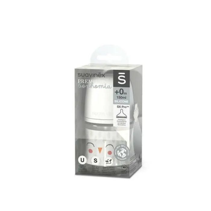 Biberón de 150 ml de Bonhomía, la nueva colección Premium de Suavinex. Biberón con Tetina Fisiológica SX Pro de Silicona, de Flujo Lento, +0 Meses. La nueva tetina fisiológica Suavinex SX Pro es el paso definitivo hacia una alimentación más natural.