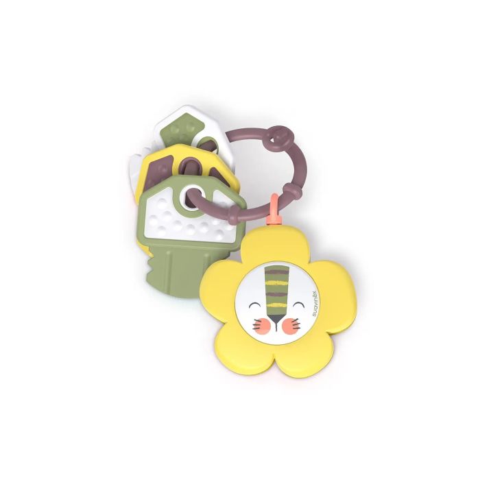 Contiene un mordedor musical sonajero Suavinex de color amarillo.