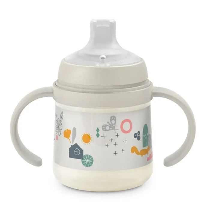 Biberón First de Suavinex con asas y boquilla de silicona. Vaso aprendizaje bebé de 150 ml. Biberón entrena ideal para pasar del biberón con tetina a las primeras tazas de entrenamiento de manera cómoda y sin darse cuenta. Vaso antigoteo ideal para bebés +6 meses.La boquilla de silicona, suave y blandita, cuenta con un sistema anticólicos para reducir las molestias que pueden ocasionarse de la ingesta de aire como el hipo o los gases.Su rosca con asitas se puede adaptar a cualquier biberón Suavinex, excepto el biberón ZeroZero o los biberones con botella de silicona de la Colección Colour Essence. El cuerpo también es compatible con cualquier tetina de Suavinex, excepto las tetinas Zero Zero.Este biberón con asas incluye un vaso protector para una mayor higiene, así puede utilizarse como botella de agua para bebé cuando salgas de casa.Conócenos: Somos Suavinex, empresa especializada en el sector del cuidado del bebé y de la madre