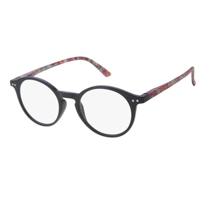 Surgicalmed Euro Optics Gafas De Lectura Para Presbicia Gala (Negro Mate, Rojo /Flor En Las Patillas Y Decoración Plateada) (+3.00)