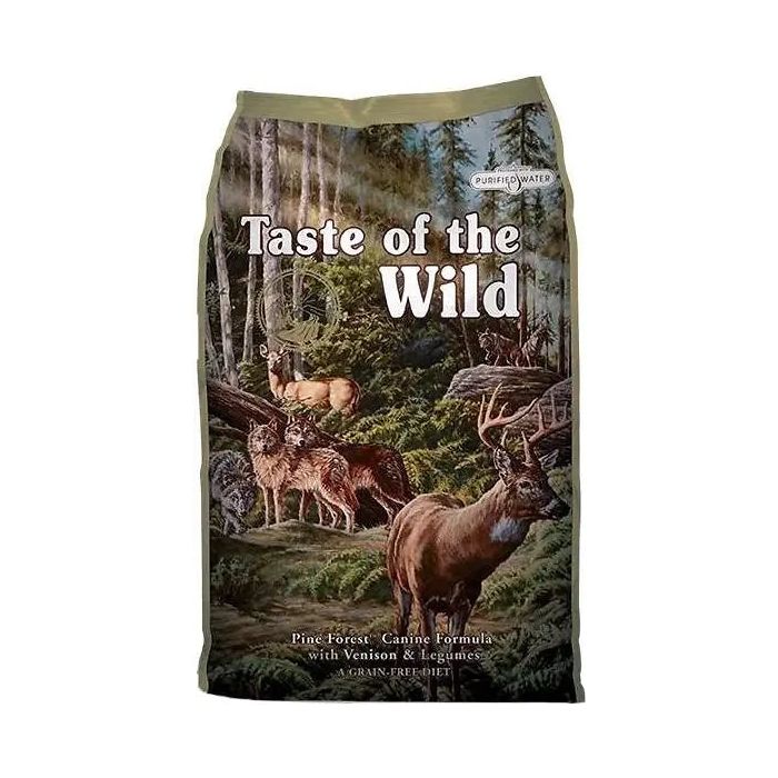 Pienso para perros Taste of the Wild Pine Forest con venado y legumbres Taste of the Wild Pine Forest con Venado es un pienso de calidad premium para perros de todas las razas, edades y tamaños. Tiene una fórmula completa y equilibrada adaptada a las necesidades nutricionales naturales del perro. Tiene un alto contenido de proteínas que provienen de la abundante carne de venado y de cordero. No utiliza cereales ni gluten para mejorar las digestiones y evitar intolerancias o alergias alimentarias. Una opción ideal para perros con el estómago delicado. El pienso incorpora carne magra rica en proteínas de alta calidad para conseguir un alto grado de digestibilidad y aceptación. Además, contiene una mezcla equilibrada de frutas, verduras y fibras vegetales para proporcionar una nutrición óptima. Algunos de sus ingredientes principales son el cordero, el venado, los tomates, los huevos, los arándanos y las frambuesas. Los cereales se sustituyen por legumbres ricas en hidratos de carbono, como las lentejas y los garbanzos. Es un alimento elaborado sin subproductos animales, despojos ni potenciadores del sabor. Este pienso para perros también añade prebióticos, como la raíz de achicoria y los extractos de yucca, beneficiosos para la flora intestinal y el sistema inmunitario. Por otro lado, los antioxidantes naturales fortalecen el organismo y retrasan el envejecimiento de las células. Los ácidos grasos omega 3 y omega 6 también están presentes en la receta, para que el perro tenga una piel sana y un pelaje sedoso y brillante.Disponible también para perros de raza pequeña: Taste of the Wild Appalachian Valley. VENTAJAS DEL PIENSO TASTE OF THE WILD PINE FOREST: Pienso completo y equilibrado para perros. Con carne de cordero y de venado. Proteínas de alta calidad. Libre de cereales y gluten. Con arándanos y frambuesas. Rico en ácidos grasos omega 3 y omega 6. Con multitud de vitaminas y minerales. Con antioxidantes naturales. Añade prebióticos. Digestión saludable. USO Y ESPECIFICACIONES: Pienso completo de calidad premium indicado para la alimentación de perros de todas las razas, edades y tamaños. Recomendado para perros con el estómago delicado y/o con alergia a los cereales.Cuida la salud de tu perro con un pienso premium elaborado con carne magra, frutas, verduras y legumbres: Taste of the Wild Pine Forest.