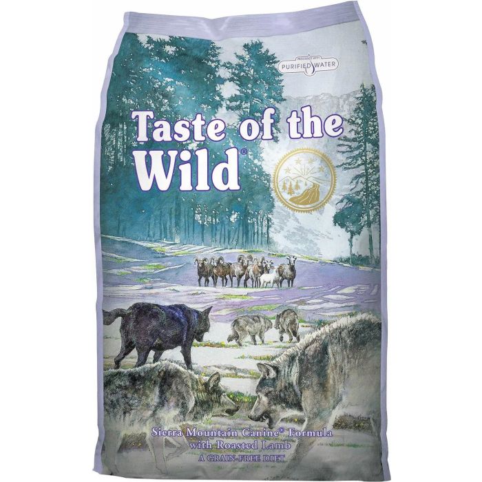 Pienso para perros Taste of the Wild Sierra Mountain Canine con cordero Taste of the Wild Sierra Mountain Canine con cordero es una comida para perros pensada para que con independencia de la raza y la edad de tu mascota, tenga en su alimentación diaria todos los nutrientes que su organismo necesita para sentirse sano y lleno de vitalidad. El sabor de la carne de cordero de esta comida natural para perros despierta su lado más salvaje y a la vez constituye un ingrediente fundamental en una dieta equilibrada canina, aportando las proteínas que demanda su organismo y facilitando su digestión. Además, se trata de uno de los mejores piensos para perros que no incluye gluten ni cereales, para así prevenir el organismo de tu mascota de intolerancias alimentarias y alergias. La flora intestinal y el sistema inmunológico están igualmente reforzados gracias al aporte de fibra que supone la raíz de achicoria deshidratada y el extracto de yuca schidigera incluidas en su composición.Además, no podrían faltar las vitaminas A, C y E que aportan las frutas, verduras y hortalizas incluidas entre los ingredientes de este pienso para perros. Las defensas naturales del organismo se hacen más fuertes gracias a estas fuentes de vitaminas para perros. En concreto, arándanos y frambuesas son especialmente beneficiosas, aportando antioxidantes que protegen las células frente al envejecimiento y los radicales libres. Entre las hortalizas de este pienso para perros cabe destacar el tomate, ya que supone un excelente aporte de fibras, vitaminas para perros, antioxidantes como betacaroteno y licopeno y además mejora la digestión del animal. El zinc, el selenio, el hierro y el calcio son minerales que también suponen un beneficio para tu mascota entre los ingredientes de este pienso para perros. Ellos harán que se sienta más feliz y lleno de vitalidad. Además, los hidratos de carbono de la batata y la patata le mantendrán lleno de energía todo el día. La elaboración de este alimento también supone beneficios en el proceso digestivo de tu mascota al utilizar agua totalmente limpia y sana sometida a un proceso de osmosis en su fabricación, de tal manera que queda libre de microorganismos y productos químicos. Los tejidos y los sistemas del organismo de tu fiel amigo se ven igualmente beneficiados gracias al equilibrio proteico y de aminoácidos de la composición de este pienso para perros. Los minerales quelados que se incluyen hacen que la absorción de los nutrientes sea más rápida y eficaz. Taste of the Wild Sierra Mountain Canine con cordero cumple con los objetivos de calidad exigidos por la Asociación Americana Oficial del Control de Calidad de Alimentos (AAFCO)VENTAJAS: Pienso natural con carne de cordero que aporta un delicioso sabor. Sin cereales ni gluten para la prevención alergias e intolerancias alimentarias. Flora intestinal equilibrada gracias a la fibra que contiene. Refuerzo de las defensas naturales y beneficios en la piel y el pelo con las vitaminas. Aporta la fuerza, vitalidad y energía necesarias gracias a su multitud de nutrientes. USO Y ESPECIFICACIONES: Pienso natural para perro con sabor a cordero en forma de croquetas de tamaño estándar de 0,8-1cm de diámetro aproximadamente, ideal para perros de todos los tamaños. Taste of the Wild Sierra Mountain Canine con cordero es un exquisito manjar con el que tendrás una mascota fuerte, sana y llena de vitalidad.