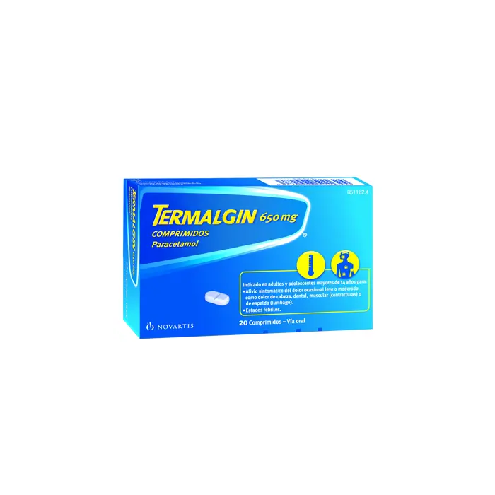 Cada comprimido Termalgin contiene 650 mg de paracetamol, siendo éste el principio activo del medicamento.Excipientes: almidón de maíz, povidona, ácido esteárico, crospovidona, celulosa microcristalina, polivinilpirrolidona ácido silícico coloidal y talco.