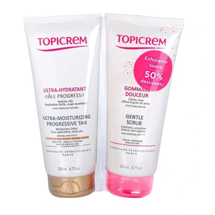Topicrem Pack Ultra Hidratante Bronceado Progresivo 200 Ml + Exfoliante 200 Ml