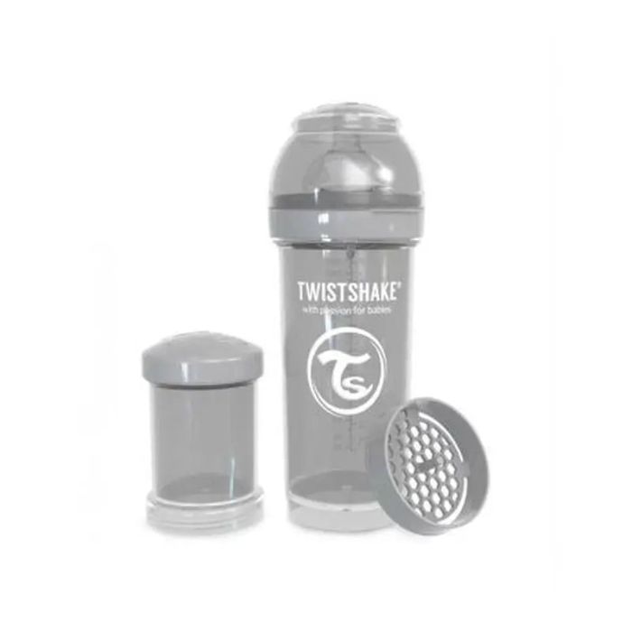 El Twistshake Biberón Anticólicos Gris es un biberón de 260 ml diseñado para