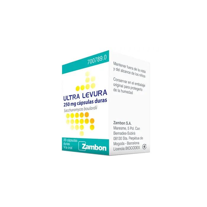 El principio activo de Ultra Levura 250 mg es una levadura probiótica. Concretamente, cada cápsula contiene 250 mg de Saccharomyces boulardii. El resto de excipientes son: lactosa, magnesio estearato y sacarosa.