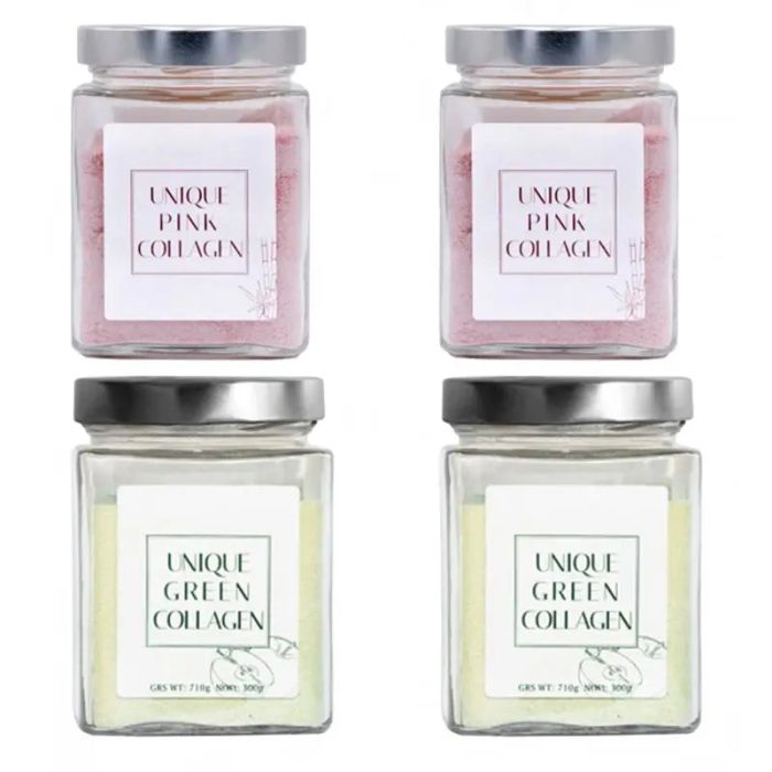 Unique Pink & Green Collagen Suplemento Nutricional, Pack 4x300 gramos