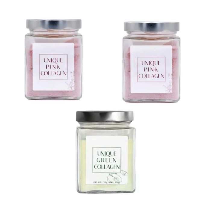 Unique Pink & Green Collagen Suplemento Nutricional, Triplo 3x300 gramos
