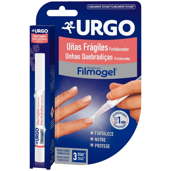 Urgo Uñas Frágiles Fortalecedor Filmogel es la solución más completa para el cuidado de las uñas gracias a su fórmula a base de queratina, glicerina, escualeno y su tecnología Filmogel. Luce uñas más fuertes en sólo 3 dias. Fortalece las uñas frágilesGracias a la acción de la queratina, que fortalece las uñas y aporta mayor resistencia a las uñas frágiles y quebradizas. Nutrición extra para las uñas:Gracias a la glicerina que retiene la hidratación y el escualeno que restaura los lípidos de la uña para mayor flexibilidad. Uñas más fuertes en tres díasProtege las uñas frente a agresiones externas gracias a su tecnología Filmogel, que forma un film protector invisible sobre la uña.