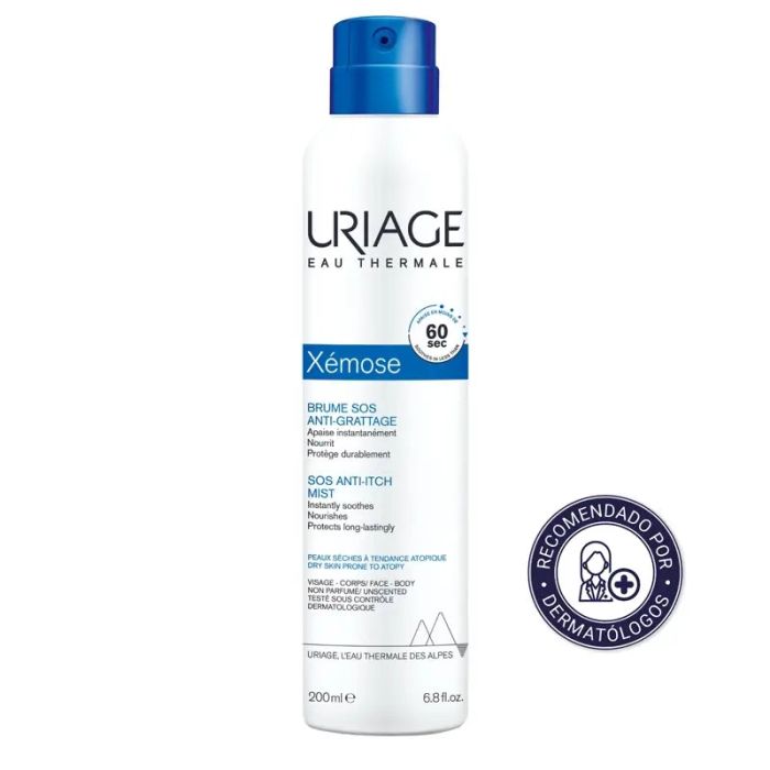 [BRUMA SOS DIARIA ANTIPICOR]: Experimenta un alivio y una nutrición instantáneos para la piel seca y con tendencia al eccema atópico con nuestro spray corporal anti-picor ultrafresco y ligero. Recomendado por dermatólogos y adecuada para bebés, niños y adultos, esta bruma proporciona un confort inmediato.[RESULTADOS ULTRA-RÁPIDOS]: Clínicamente probado para calmar la sensación de picor o rascado en solo 60 segundos*. Con una potente acción anti-reaparición de 24 horas**, tu piel se mantendrá reconfortada, libre de picor durante todo el día.[INGREDIENTES HIDRATANTES Y CALMANTES]: Cuida tu piel con la mezcla enriquecedora de manteca de karité de Xémose Bruma SOS. Esta bruma nutritiva envuelve tu piel en una hidratación duradera, proporcionando una piel suave y lisa. Enriquecido con CERAMIDAS, protege la piel de las agresiones externas. La fórmula también cuenta con una patente exclusiva que alivia inmediatamente las sensaciones de picor y el exclusivo AGUA TERMAL DE URIAGE, conocido por sus propiedades calmantes y suavizantes.[FÁCIL APLICACIÓN]: El innovador diseño de pulverización 360° de Uriage XEMOSE Bruma permite una aplicación sin esfuerzo, incluso en zonas de difícil acceso. Disfruta de la simplicidad de mantener el aspecto saludable de tu piel con una bruma uniforme que se absorbe rápidamente, sin dejar residuos grasos.[SEGURIDAD]: Desarrollado y recomendado por dermatólogos - Apto para pieles secas con tendencia al eccema atópico - Alta tolerancia - Sin perfume[MARCA RECOMENDADA POR DERMATÓLOGOS] : Los productos Uriage, desarrollados en colaboración con dermatólogos, ofrecen una amplia gama de productos para el cuidado de la piel de alta tolerancia, adecuados para distintos tipos de piel, incluidas las pieles extra secas, sensibles, maduras, grasas y con tendencia acneica, destinados a personas de todas las edades.*Estudio clínico realizado bajo control dermatológico, 27 sujetos, autoevaluación**Evaluación clínica por dermatólogos y pediatras - 39 voluntarios - 30 días - Test anti-reaparición de 24H