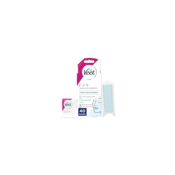Veet Pure Bandas de Cera Fría Depilatoria para Depilación Facial, 40 Tiras