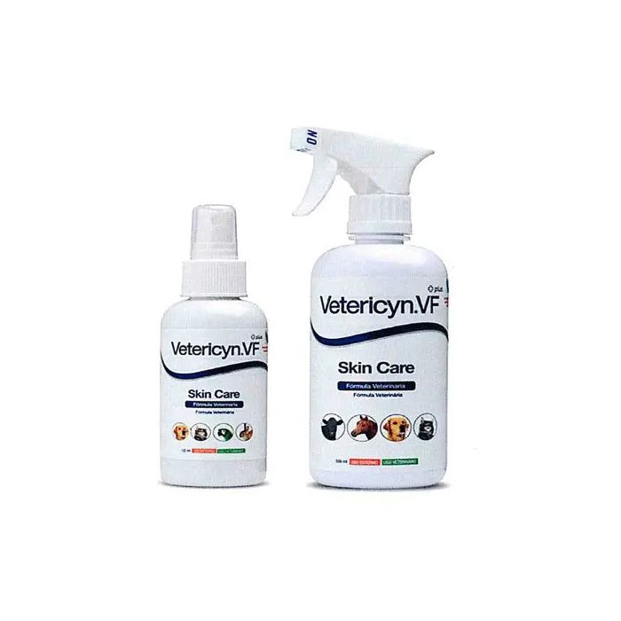 Vetericyn Plus VF Solución Antiséptica está especialmente formulada para limpiar, irrigar, humedecer y desbridar heridas de todo tipo.Disponible en tres formatos de 500 ml, 120 ml y 55 ml.Fórmula no tóxica ni irritanteEspecies de destino: Gatos, perros, equino, ovinoVetericyn Plus VF tiene actividad antipruriginosa junto con acción antimicrobianaLa fórmula en aerosol permite una fácil aplicación y se puede usar para aumentar la presión durante el desbridamiento mecánicoTres tamaños para su uso en clínica y en pacientesNo deja residuosSeguro tanto si es lamido como ingeridoSin antibióticos ni corticoesteroides: seguro para su uso en animales con enfermedades sistémicas, como diabetesIndicaciones:Preparación del lecho de la heridaLimpieza e irrigaciónHeridas agudas y crónicasCortes y abrasionesQuemaduras, llagas, úlcerasAvulsionesIrritaciones dérmicas y mucosasHeridas en las extremidades inferiores, almohadillas y áreas interdigitalesInjertosAplicaciones postquirúrgicasReducción del dolor y el olorCaracterísticas:Fórmula no tóxica ni irritanteVetericyn Plus VF no es citotóxico, no irrita, no genera sensibilización y no tiene toxicidad oral. Puede ser usado con seguridad en todos los tejidos dérmicos sin dañar los fibroblastos.Sin contraindicaciones con otros fármacos o tratamientosVetericyn Plus VF es un producto seguro, no se han descrito contraindicaciones con fármacos o tratamientos.Solución estable con larga vida útilVetericyn Plus VF está disponible en 3 tamaños (500 ml, 120 ml y 55 ml) para facilitar su uso tanto en la clínica como en el hogar. Los productos tienen una vida útil promedio de 24 meses gracias al exclusivo proceso de fabricación que optimiza los niveles de HOCl y pH.