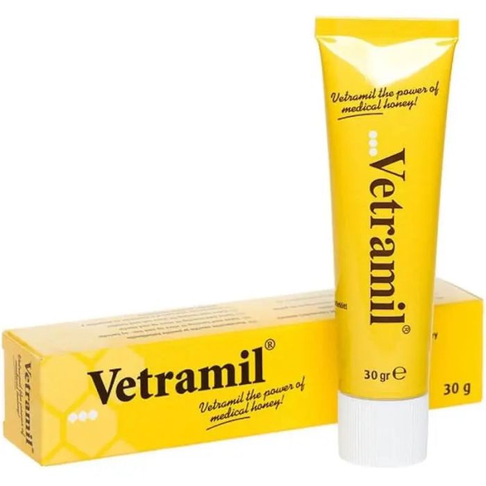 Pomada cicatrizante para perros y gatos Vetramil Vetramil es una pomada cicatrizante para perros y gatos indicada para el cuidado de úlceras y heridas. Es muy hidratante y combate las infecciones para que la piel se recupere rápidamente. Toda una revolución en cuanto a protección de la piel. Con Vetramil podrás proteger y curar la piel de tu mascota de forma suave y segura. Puedes utilizarla en cualquier tipo de herida.