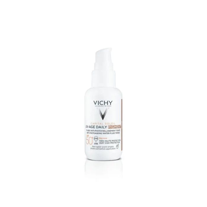 UV-age Daily es un fotoprotector de Laboratorios Vichy con acción antifotoenvejecimiento, formulado con niacinamida y péptidos antiedad. Su tecnología Netlock multipatentada crea una película ultrafina y resistente que protege contra los rayos UVA y UVB, responsables de más del 80 % de los signos de envejecimiento. Su fórmula es apta para el uso diario, incluso en condiciones de alta exposición al sol, como durante la práctica deportiva o en la playa.