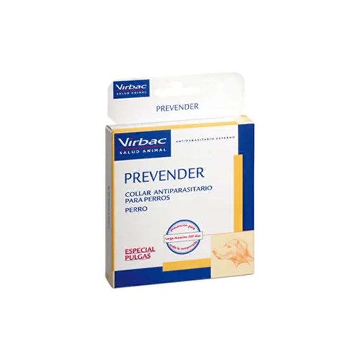 Collar antiparasitario especial pulgas para perros Prevender. Eficaz collar antiparasitario especialmente diseñado para su uso en perros. Es efectivo para la prevención y tratamiento de las parásitosis externas de los perros producidas por pulgas. Es efectivo durante 200 días (6 meses y medio). Fabricado por Laboratorio Virbac. Este collar tiene efecto especial contra las pulgas de las especies Ctenocephalides canis y felis, aunque previene contra las infestaciones producidas por las garrapatas de las especies Rhipicephalus sanguineus, Dermacentor variabilis y Otobius megnini, ofreciendo una completa protección contra los parásitos. La línea Prevender® está constituida por collares antiparasitarios para perros que incorporan en su matriz un insecticida organofosforado llamado Diazinón, cuyo mecanismo de acción es inhibir la acetilcolinesterasa. El insecticida puede entrar al parásito por succión o a través de la cutícula debido a su alta liposolubilidad. En la sinapsis nerviosa un impulso nervioso es transmitido por la acetilcolina (Ach), una vez transmitido el mensaje, la Ach es destruida por acción de una enzima llamada acetilcolinesterasa, por lo que el impulso es anulado para otra transmisión. Al anularse la acción de la Ach, la transmisión de los impulsos nerviosos no puede ser interrumpida y la contracción muscular conduce a parálisis y muerte del parásito. Solamente los insectos poseen sinapsis colinérgicas en el sistema nervioso central, por lo que los signos en los insectos son hiperexcitabilidad, convulsiones, parálisis y finalmente la muerte. Únicos por contener el principio activo en la matriz del collar junto con el vehículo liposoluble, por lo que la liberación se hace lenta y controlada (máxima seguridad) y no se inactiva con el agua (máxima efectividad).