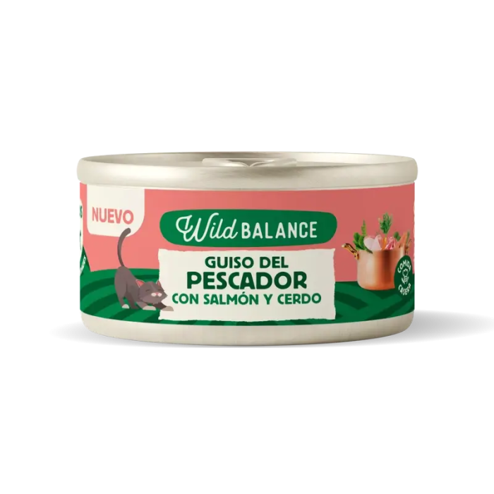 Wild Balance Lata Guiso Del Pescador Con Salmón, Cerdo Y Verduras Para Gatos, 80gr