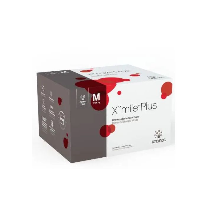 Xmile® Plus barritas dentales activas es un producto eficaz, seguro y fácil de administrar para que los propietarios de las mascotas estén plenamente satisfechos con las soluciones que les propone su veterinario-dentista.Ovoextracto enriquecido con inmunoglobulinas: las barritas dentales activas Xmile Plus contienen ovoextracto rico en IgY frente a Porphyromonas, la principal bacteria causante de la placa y el mal aliento.Cúrcuma: la cúrcuma ha demostrado efectos antioxidantes, antiinflamatorios y antimicrobianos de gran interés en la prevención de la enfermedad periodontal y en el control del biofilm.Sulfato de Zn: actúa como quelante de calcio de la saliva e inhibidor de la formación de placa dental